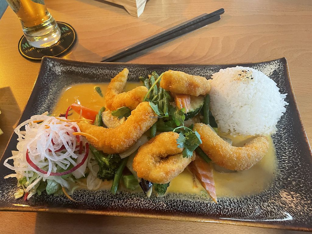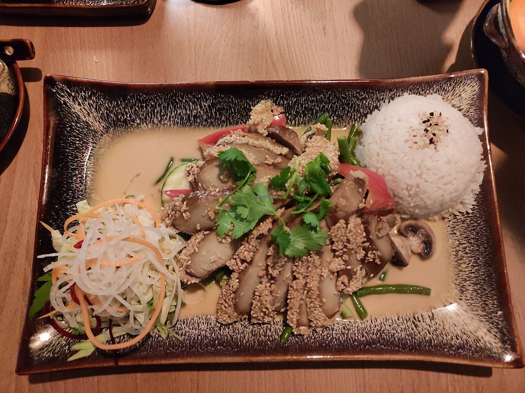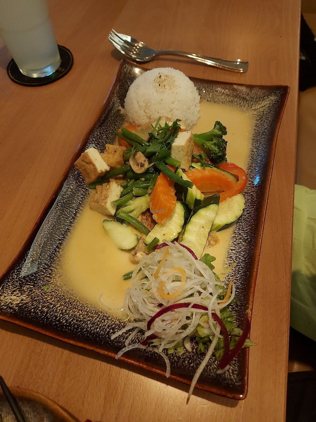 Cóm sôt ląc - Peanut sauce in coconut milk with seasonal veg, jasmine …