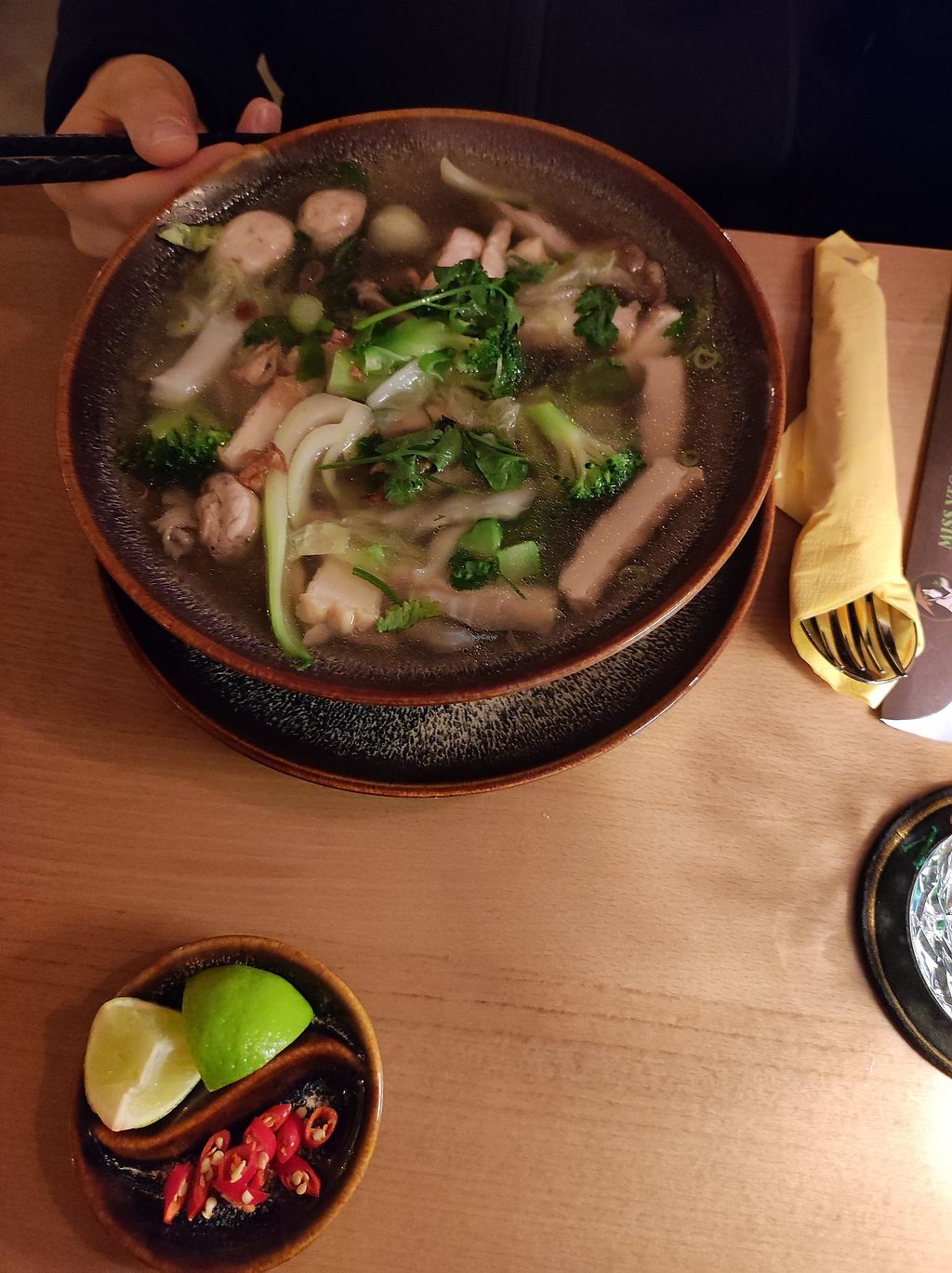 Canh wan tan - tofu, mushroom and veg filled dumplings with wonton noo…