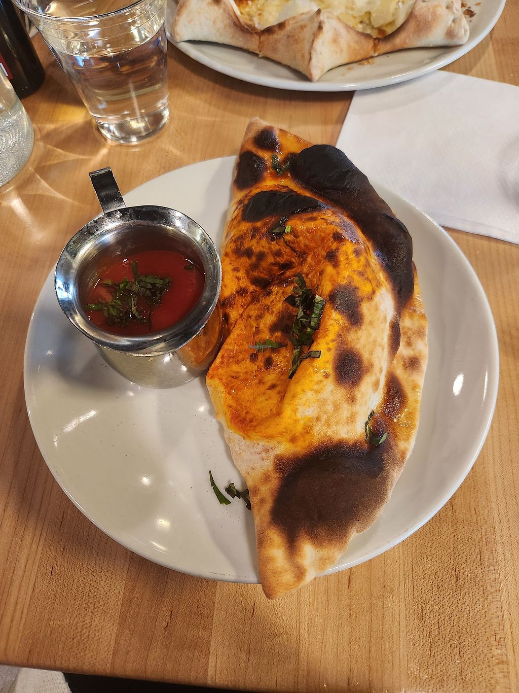 I got a vegan cheese calzone which was good, but a little burnt. Prices for their vegan cheese & desserts are a little pricey.