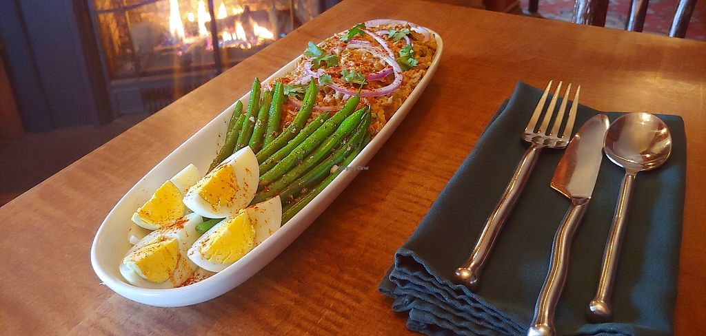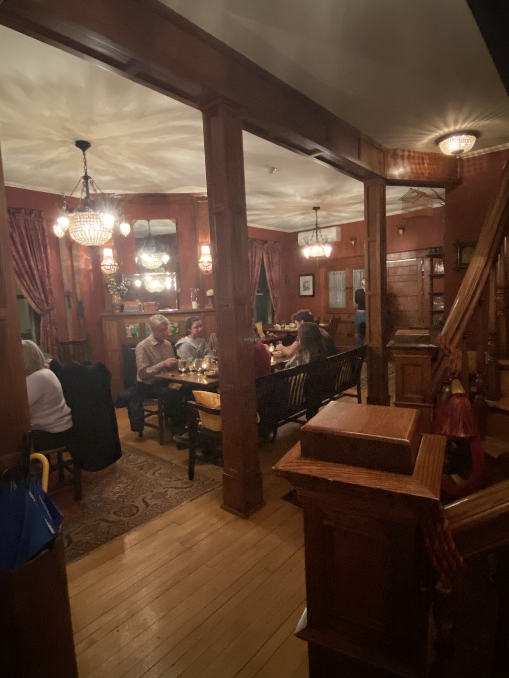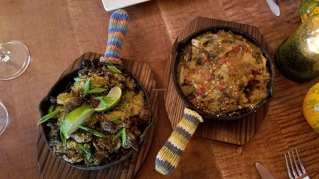 I can't begin to describe how incredible the food is here! While they do serve meat, there are several vegan options for appetizers and entrees and always 1 vegan dessert. We had Utica Greens, maple glazed brussel sprouts, mushroom strudel, acorn squash mac n cheez, asparagus and butternut squash. We finished with dessert which was peach crisp served with homemade pistachio ice cream. Everything was as if it was made specifically for our tastebuds! The restaurant itself was cozy, elegant and very tastefully decorated. Food was promptly served. They also have a super cool selection of fancy mixed drinks.