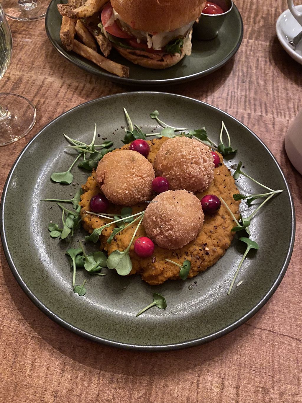 The Arancini was really delicious as well. It was a nice addition to our salad and burger. Very flavorful, colorful, nutritious, and the whole cranberries added such a nice pop while eating the purée of squash.