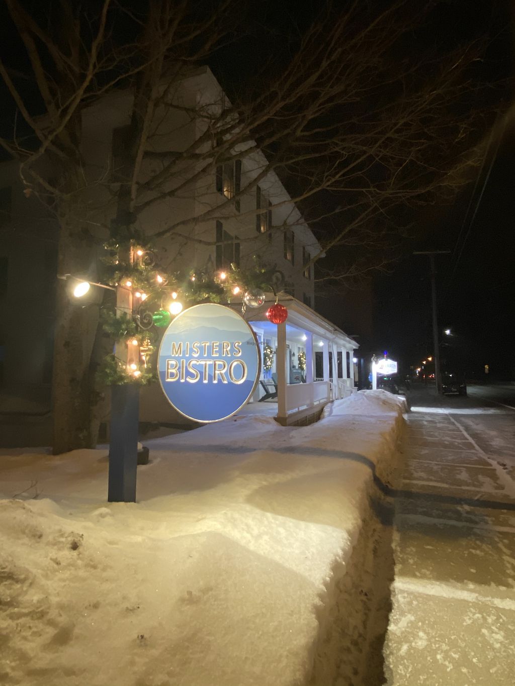 Last night we stopped in to Misters Bistro for dinner. The place is really cute from the outside and on the inside it also has a cool wood focused classy deer decore. The seating options are good. Our server was amazing really great service. The menu has an array of vegetarian and vegan friendly dishes. And they have pages of drink choices. We got two house salads, The sweet potato and black bean burger with jalapeños on the side, and Arancini, which was a pretty dish featuring squash cranberry and sprouts primarily.