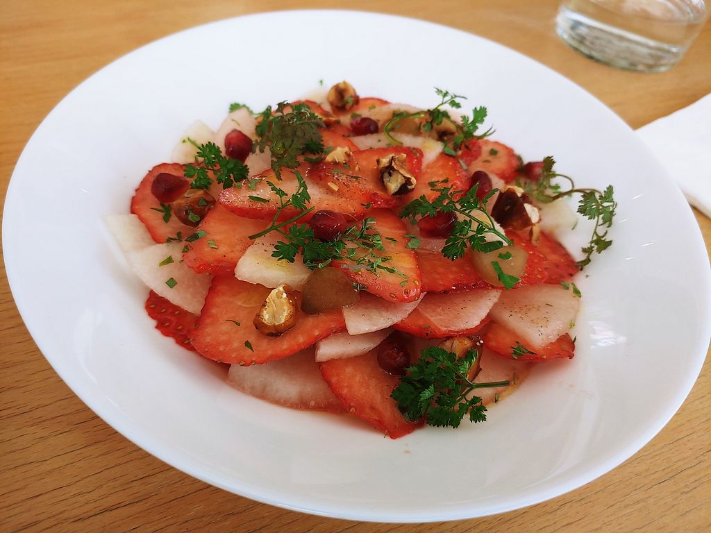 I came here with a couple of friends and ordered several dishes. At the moment, the cauliflower with herb sauce is the only fully vegan dish. The rests are vegetarian. Drinks can be veganized. As for dessert, the mandarin orange sorbet is vegan. Flavor wise, the dishes are seasoned just right with no overpowering taste. The place had a good vibe.
