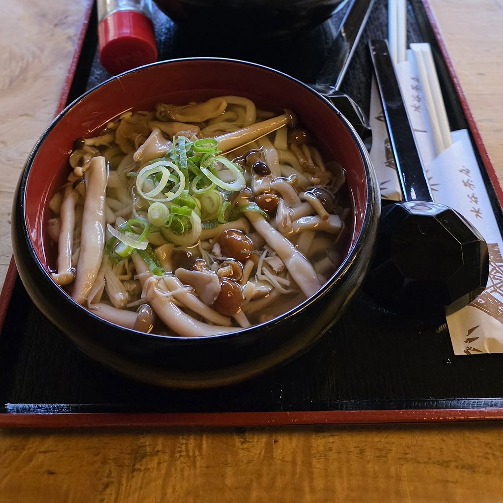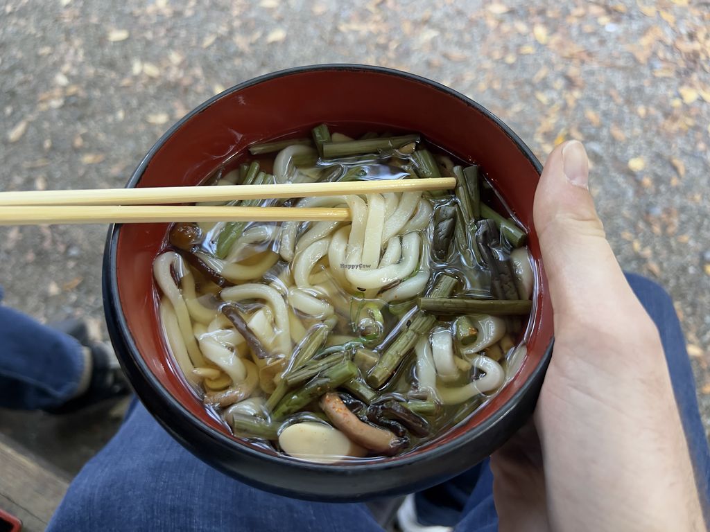 It was hard to get lunch around Nara Park today, everything was close but not this place. Friendly english spoken staff, they have two vegan soups (the tofu one is not vegan) we ordered the mushroom on at it was great.