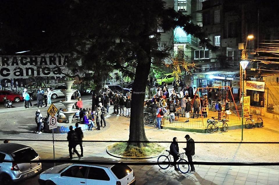 Cons: Não tem mesas, Apenas espaço externo em uma praça pública