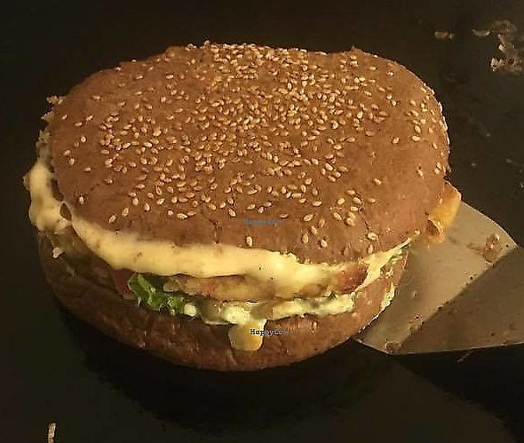 Serves meat, vegan options available. Burger eatery but with option for vegetarian and vegan burgers - specify no cheese & egg. Reported closed May 2022.