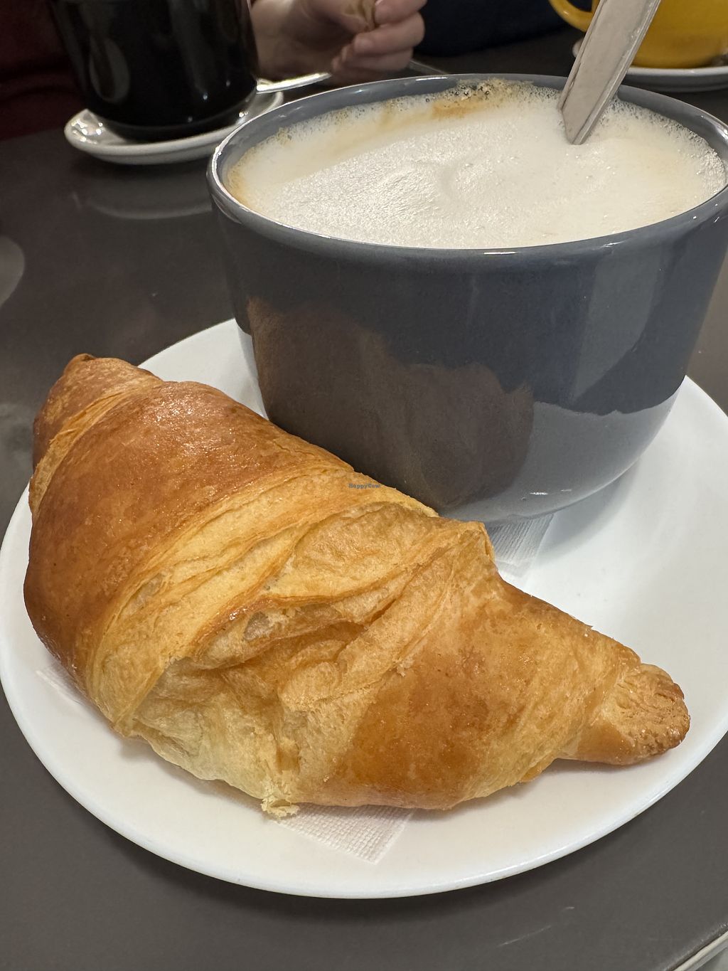 Cornetto vuoto vegano e cappuccino con latte d’avena