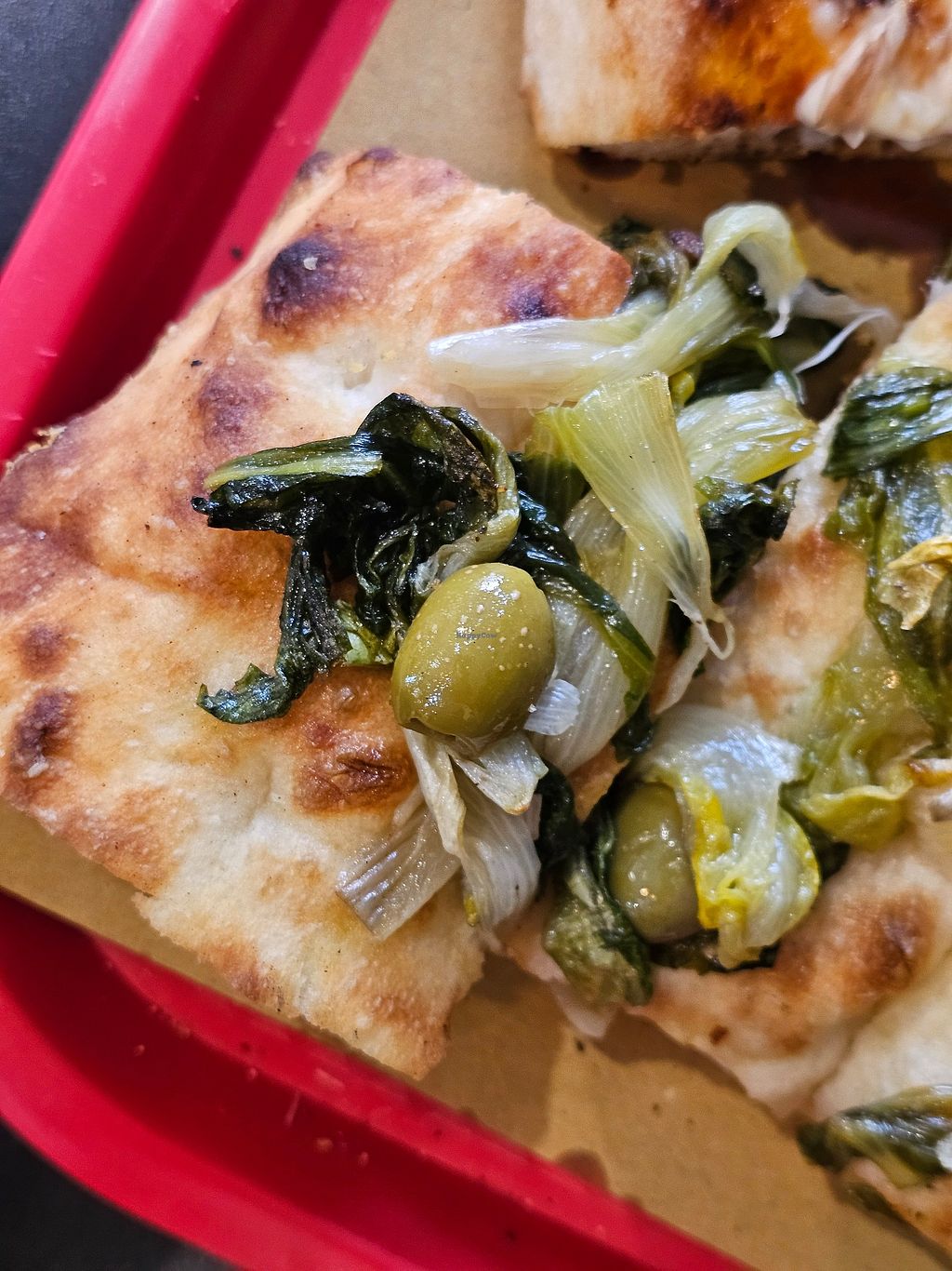 Had three slices of excellent vegan pizza. Love that it uses a roux like sauce instead of fake cheese and the base and toppings are perfection, try the pistachio mortadella.