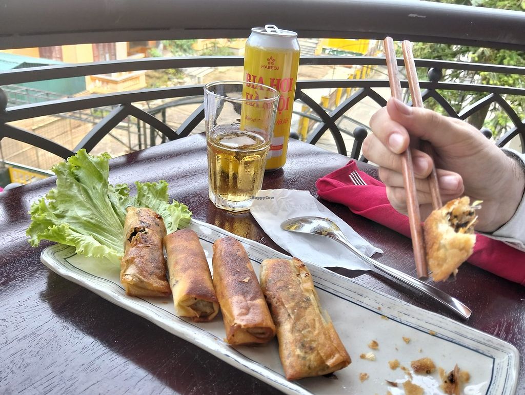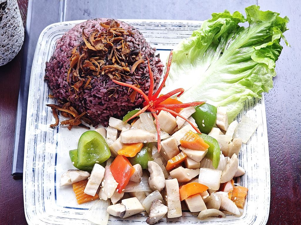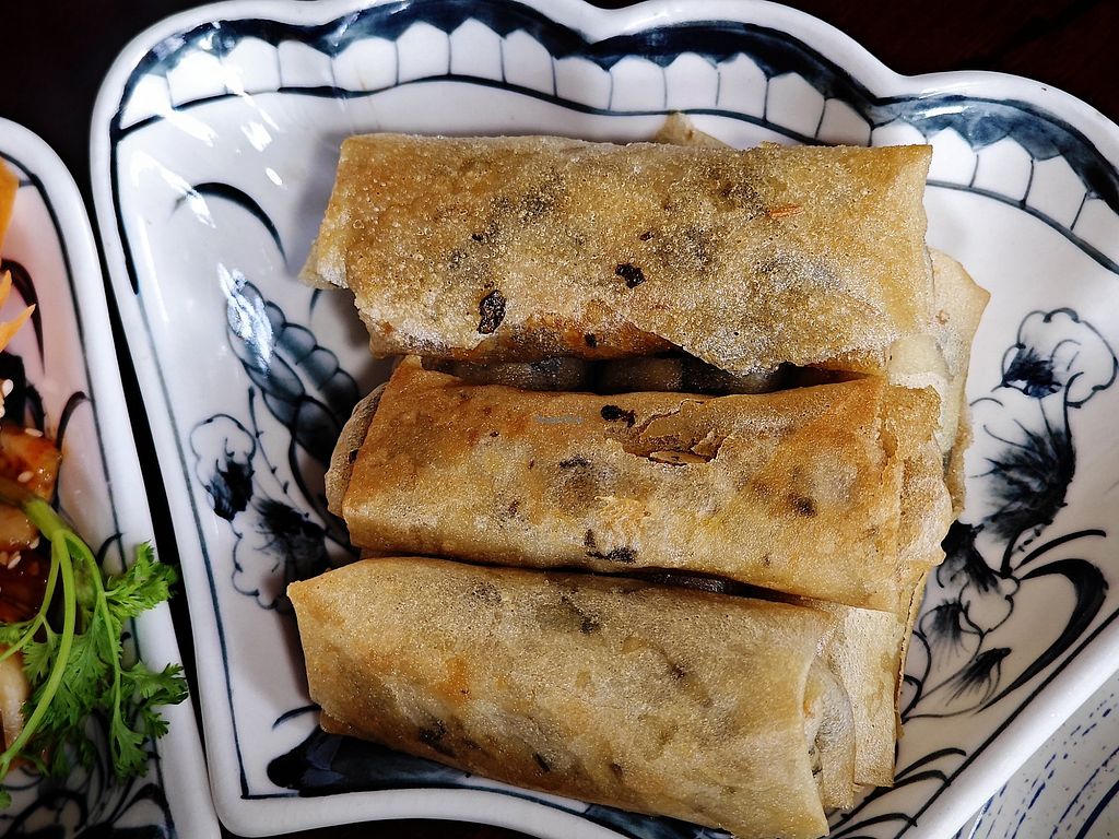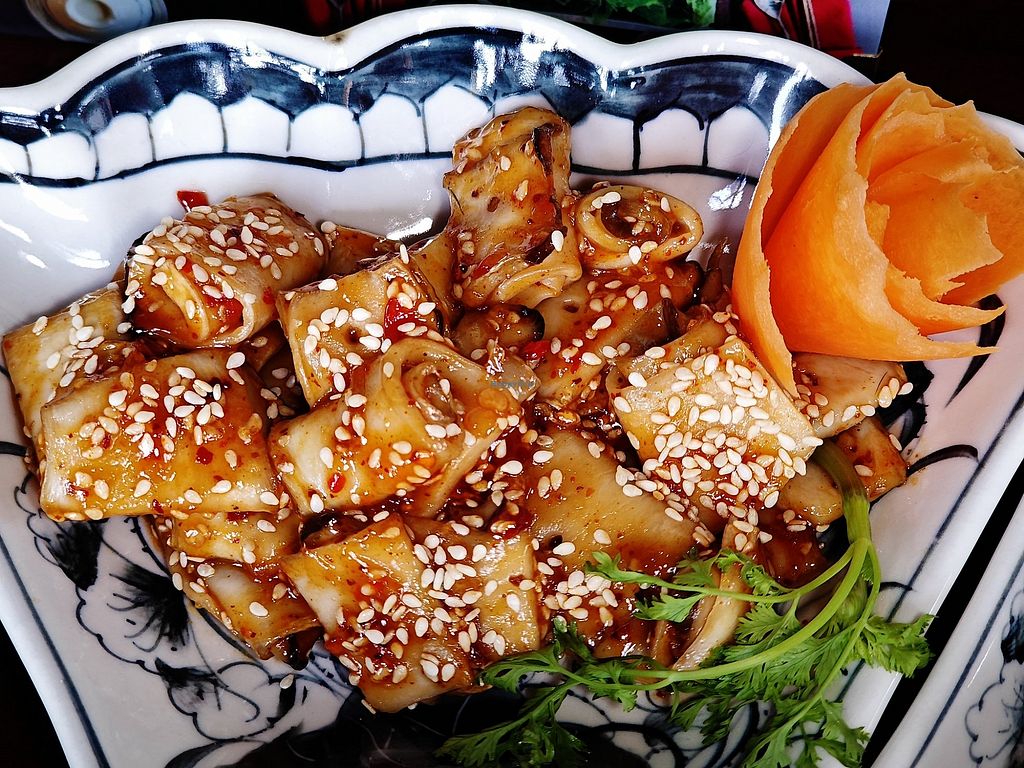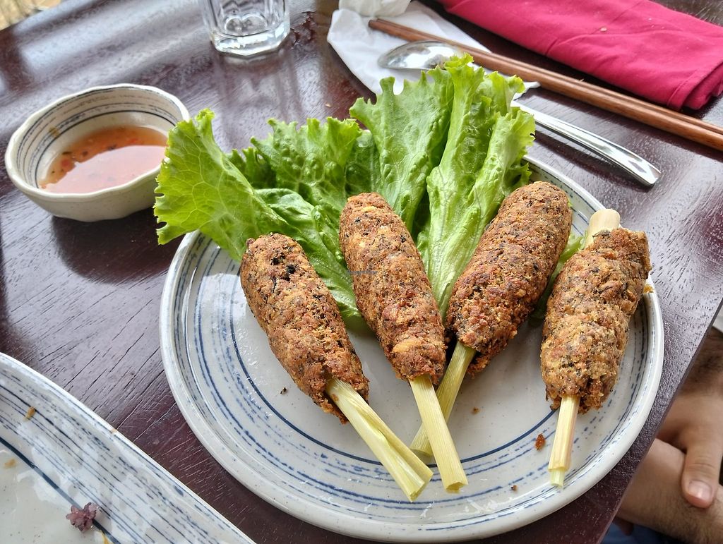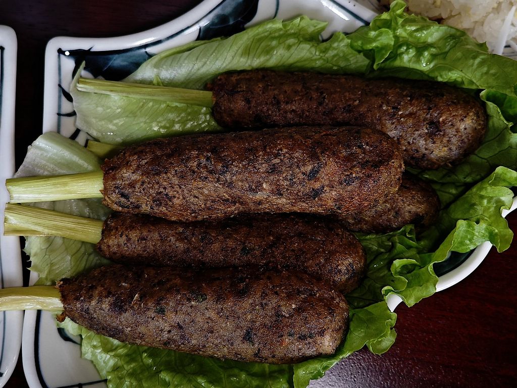 Palitos de setas con repollo rebozados, en un palo de hierbalimón. Un …