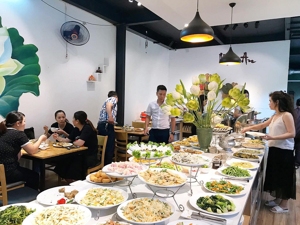 99k for this delicious veg buffet in long bien area, lots of vegetable varieties and traditional desserts to choose from as well. Well worth it as the quality is a bit better than the more affordable buffets. Cozy and comfortable seating too, with a nice atmosphere. A little English spoken.