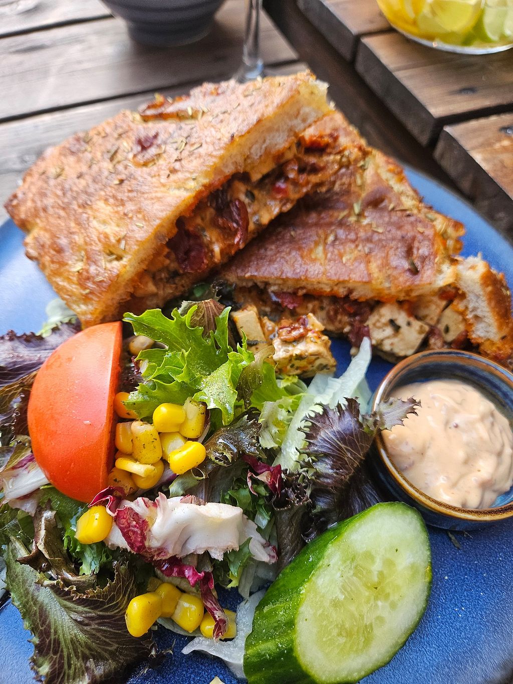 Serves meat, vegan options available. Cafe/restaurant with an outdoor patio that serves lunch and fika. Offers a selection of vegan sweets as well as savory options like grilled sandwich, salad and baked potato with tofu. Vegan items are clearly marked on the menu. Please note that many businesses in Sweden are cashless. Open Mon-Thu 10:00-22:00, Fri-Sat 10:00-23:00, Sun 10:00-21:00.