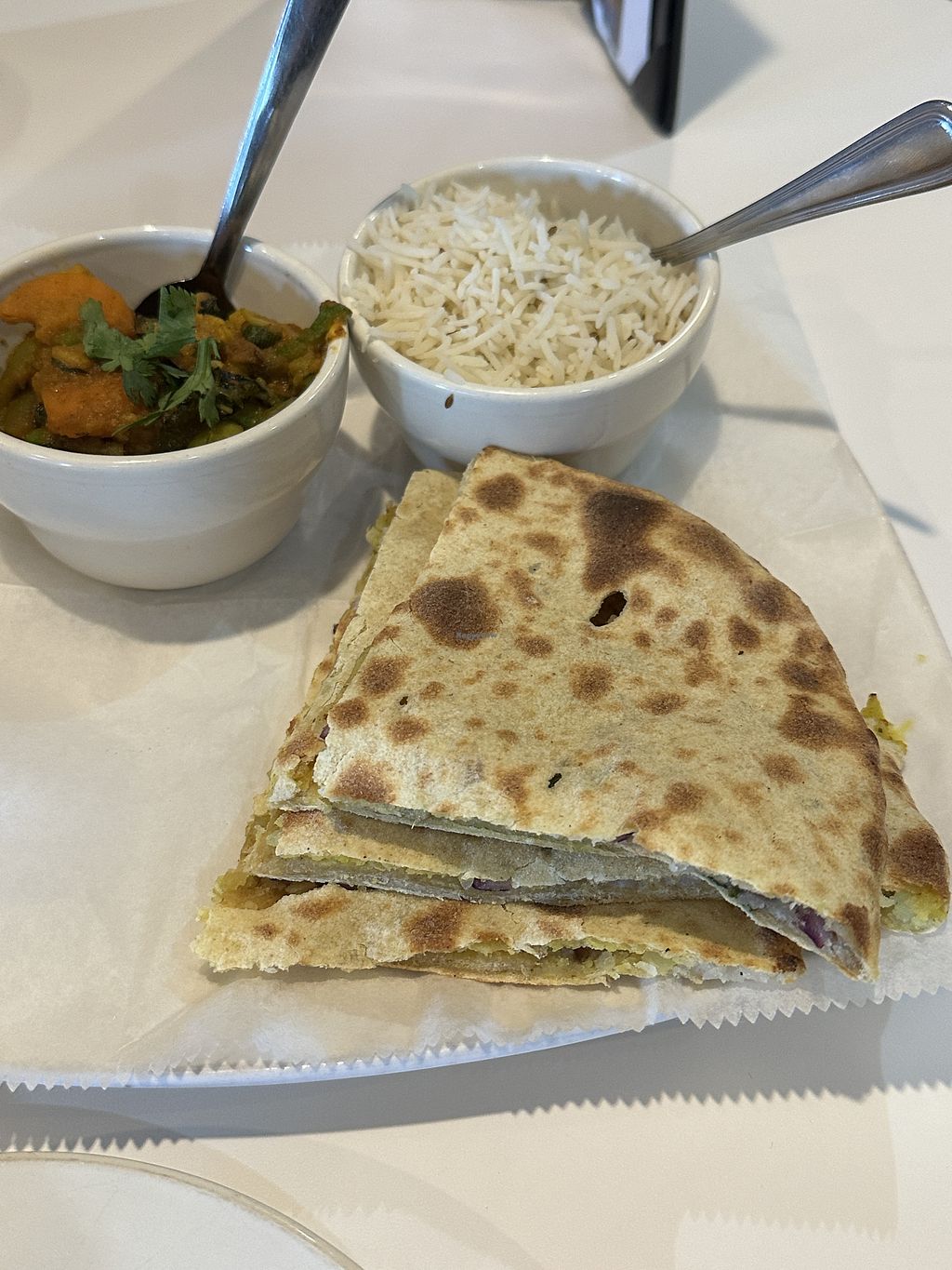 Great spot for Indian food! We went on a weekday for lunch, they have a thali lunch special that allows you to try multiple things, I highly recommend it! Lots of vegan items that are specified on the menu.