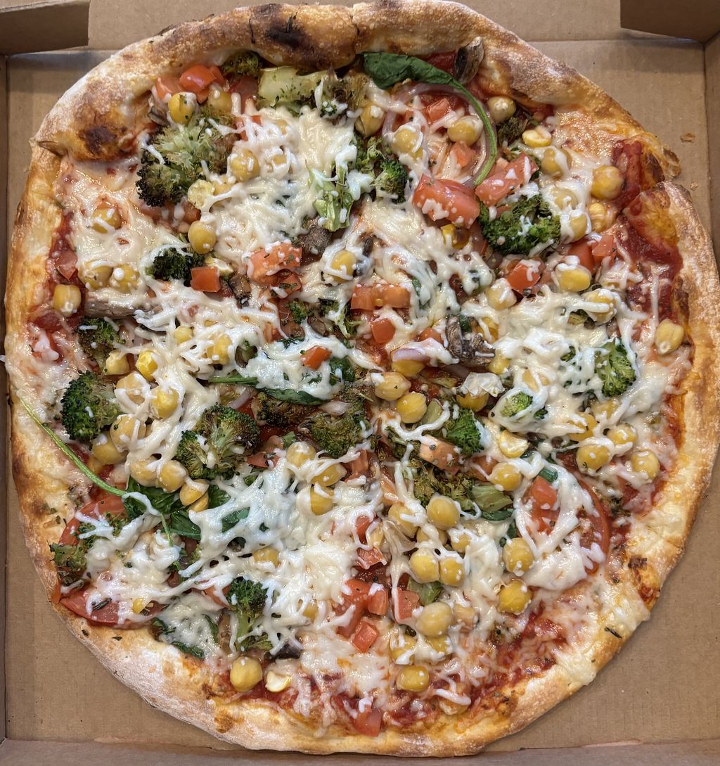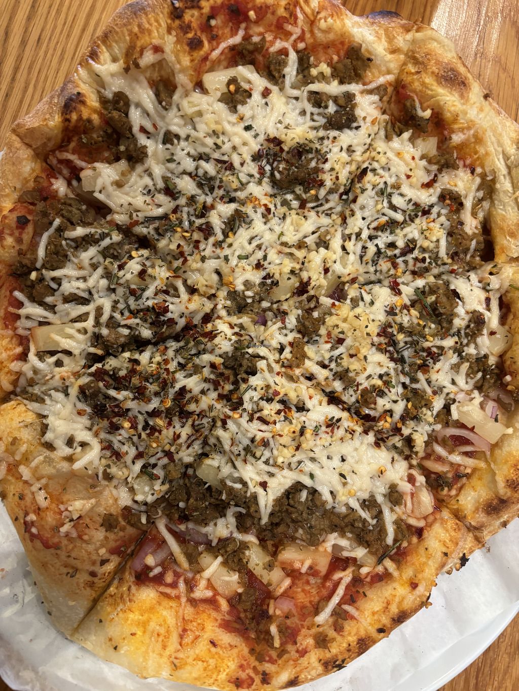 the BEST ✨ vegan pizza around, they have Daiya cheese and Beyond sausage crumbles, with the staff being knowledgable and SO friendly! employees usually change out the pizza cutter and will use a sauce container not contaminated with dairy cheese upon request.