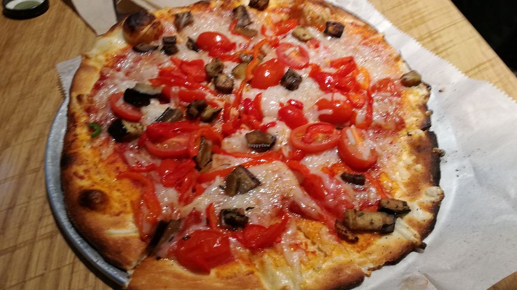 Serves meat, vegan options available. Chain of assembly line style, make-your-own pizza restaurants. Has vegan cheese, sausage, and crust. The vegan sauces are red, bbq, and garlic rub. Add as many toppings as you'd like. Reported closed January 2021.