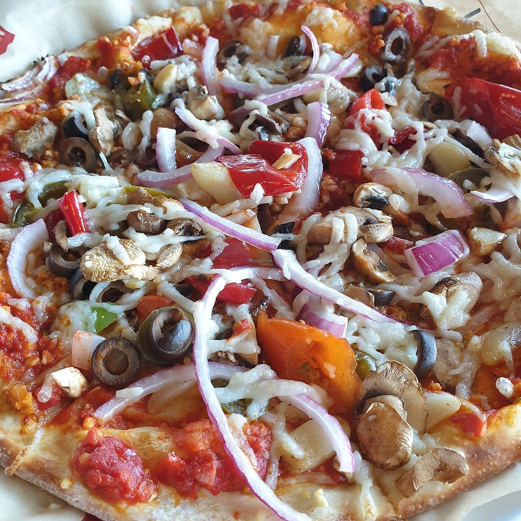love the thin crust. vegan sausage very good