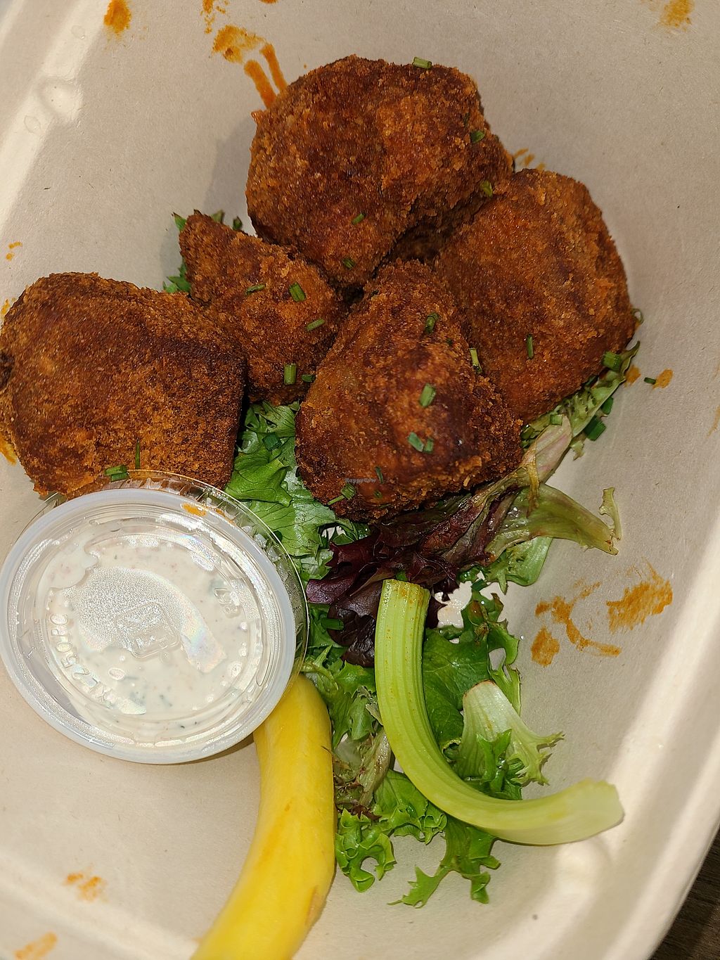 Mushroom fried chicken…individually each ingredient is delicious. Comb…