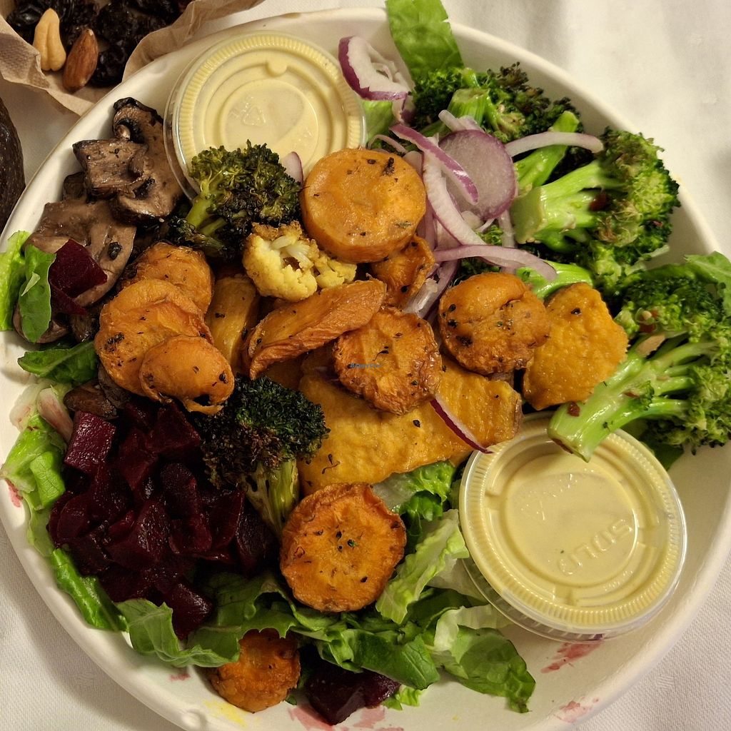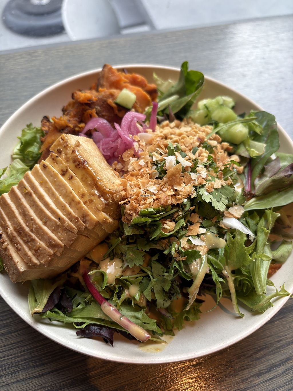 Tofu bowl, roasted veg, sweet potato mash