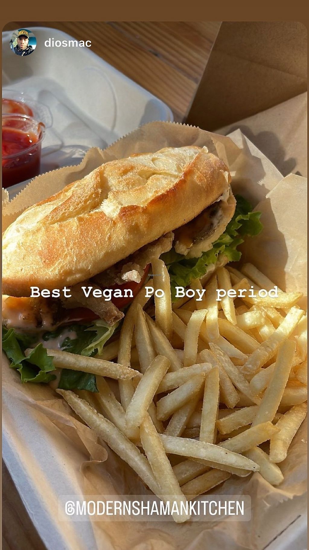 Read moreThe jackfruit carnitas tacos were good however they forgot to exclude the green onion and cilantro sauce so I didn't get to enjoy the nachos as much as my husband did. I ordered the Oy! Po'boy sandwhich and my husband ordered the No Clucks Given chicken sandwhich. Both were amazing and filling. The No Clucks Given is made with housemade gravy sauce and turmeric mashed potatoes and it's an explosion of flavor! Finally we finished off our meal by sharing a bananas foster, sweet enough to satisfy but not overindulge. The food is light enough where you leave completely satisfied and not miserably overfed.