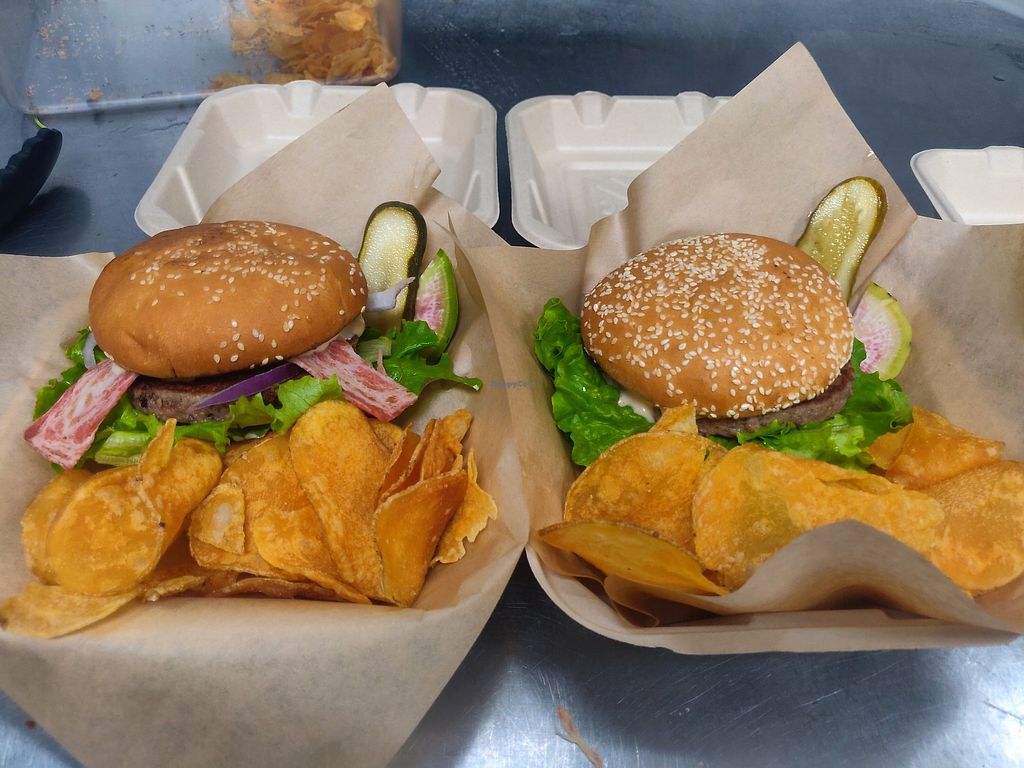 Nice assortment of food. From tacos to “chicken” sandwiches to “burgers” to fancy drinks.