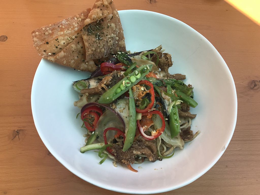 Great atmosphere on back patio, full vegan menu - Edit
