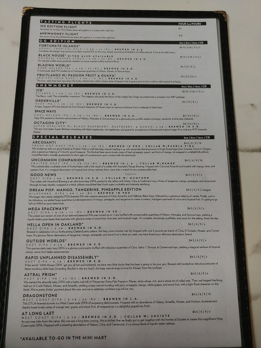 Brewery and restaurant offering vegan food menu. Est. 2019. Walk through Shaker Mill and Cubaneo to get to get to it. Order at the bar, pickup food in the far back. Example of menu items include beyond burger, reuben sandwich, pastrami sandwich, tacos, potato salad, and vegan cheesecake. Confirmed closed April 2022.