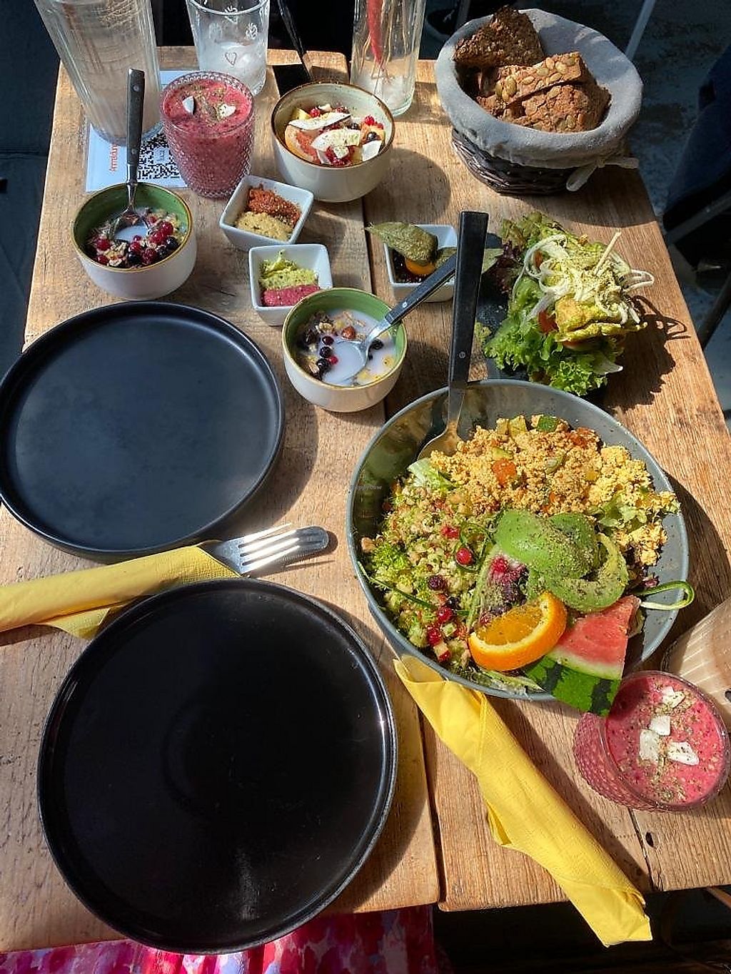 Read moreDas Essen und die Getränke waren aber wirklich sehr sehr lecker und auch schön angerichtet. Wir haben das Frühstück für zwei gegessen und es war eine sehr großes und vielseitiges Frühstück, bei dem man gut Satt geworden ist. Die belegte Spinatwaffel war super und auch die Smooties und Müslis waren sehr gut.