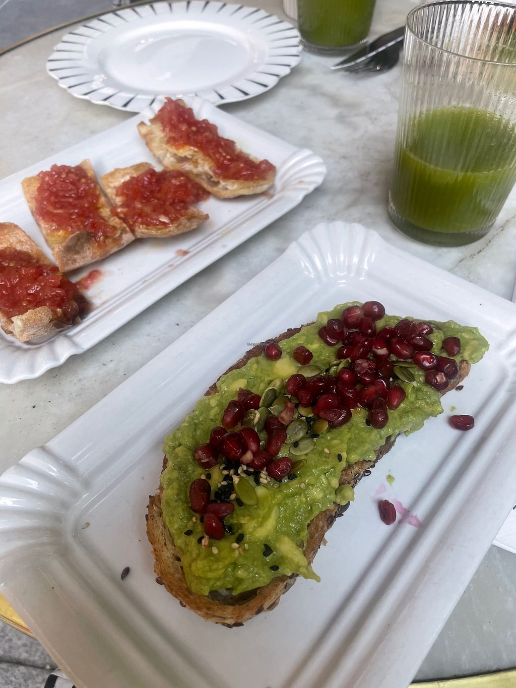 El risotto se puede pedir vegan. Yogur vegan de coco. Avocado toast. Ensalada con tofu y lentejas. Cookie vegana y sin gluten. También opciones para no veg.