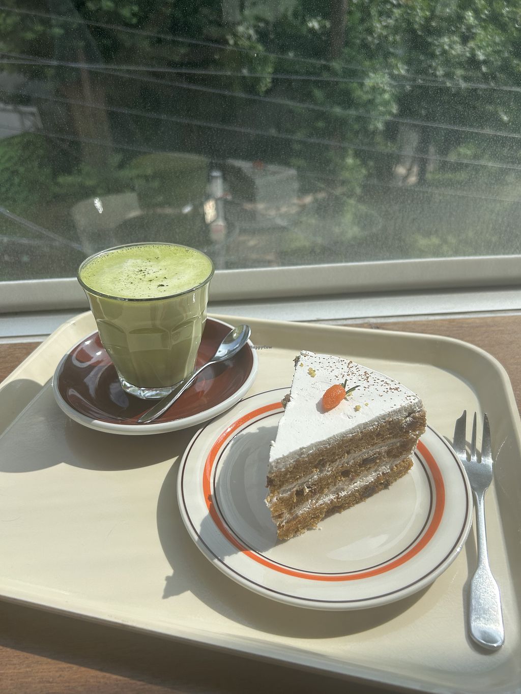 Hot matcha and carrot cake