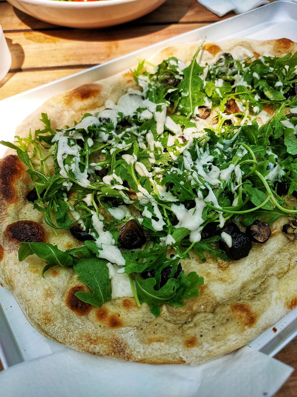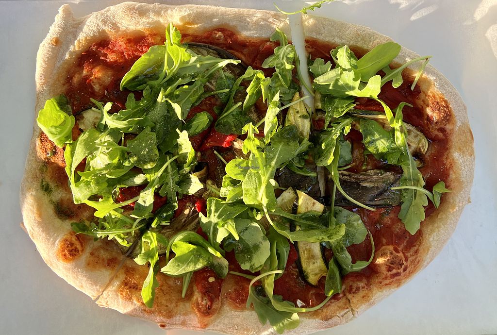 Very delicious vegan pizza which you can enjoy sitting at the waterfront.