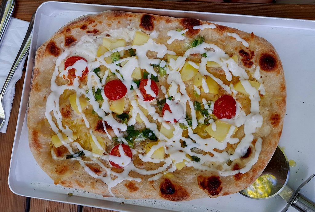 Pizza was delicious! Certain something was missing. It's very nice that there is a completely vegan café right on the Maschsee, especially since the gastronomy here is very rare anyway 😅 maybe more people will notice that vegan pizza is very tasty😄The dessert was too sweet for me ( rhubarb tiramisu) that clearly needs improvement 🙃
