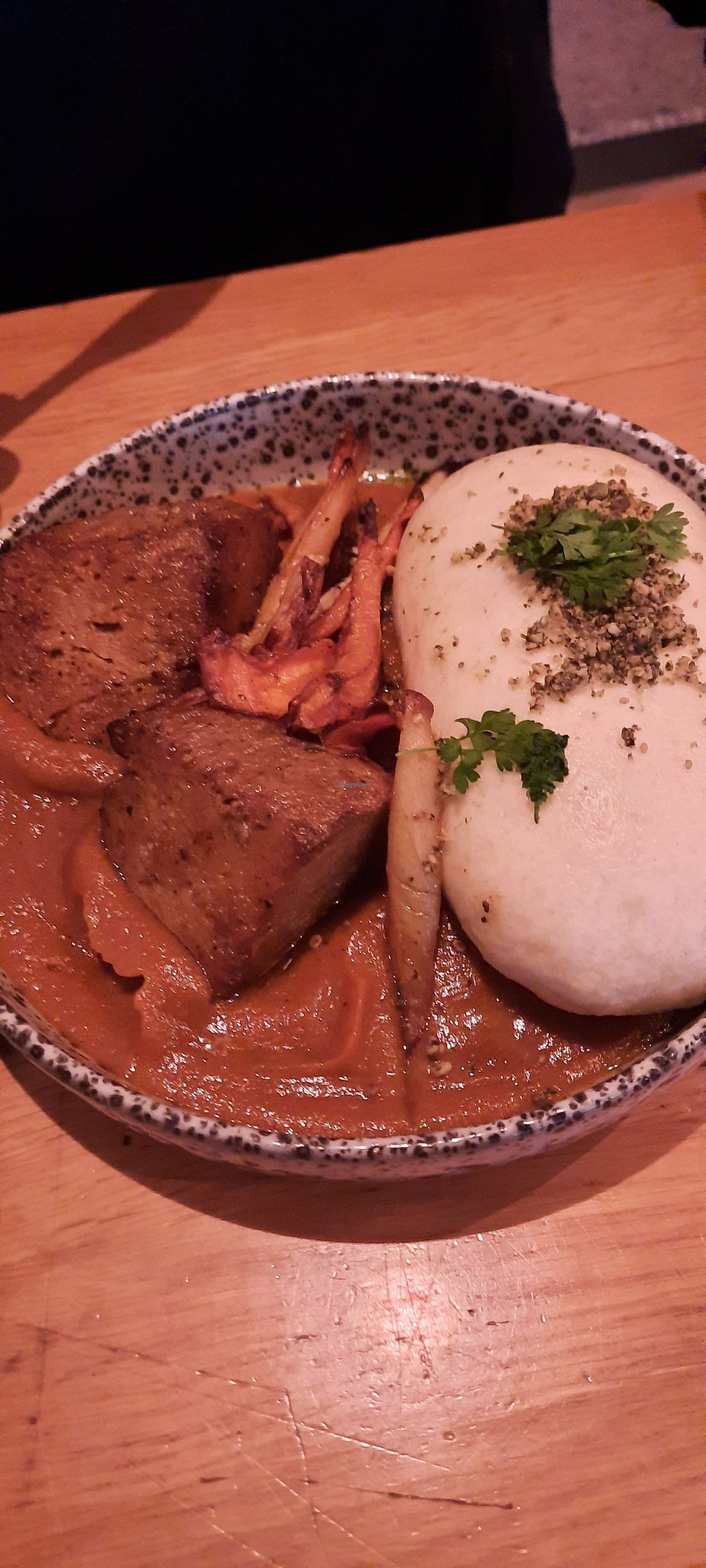 I got the Svíčková na smetaně. The "meat" was very well made and super…