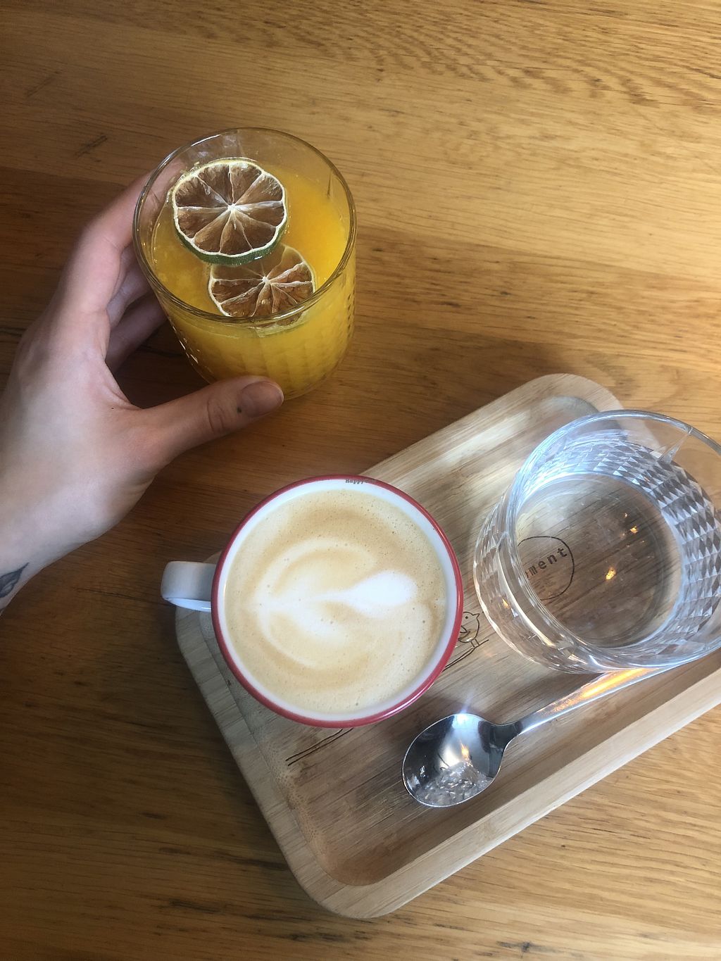 Chai latte based on oat milk. Good but I could use a biiiiit more spic…