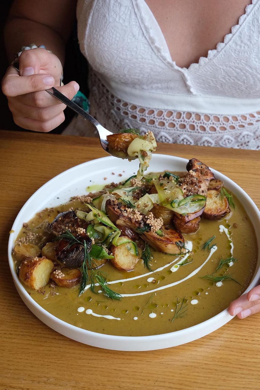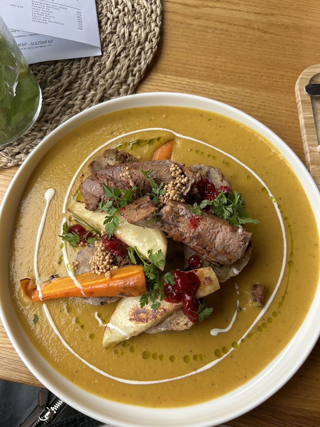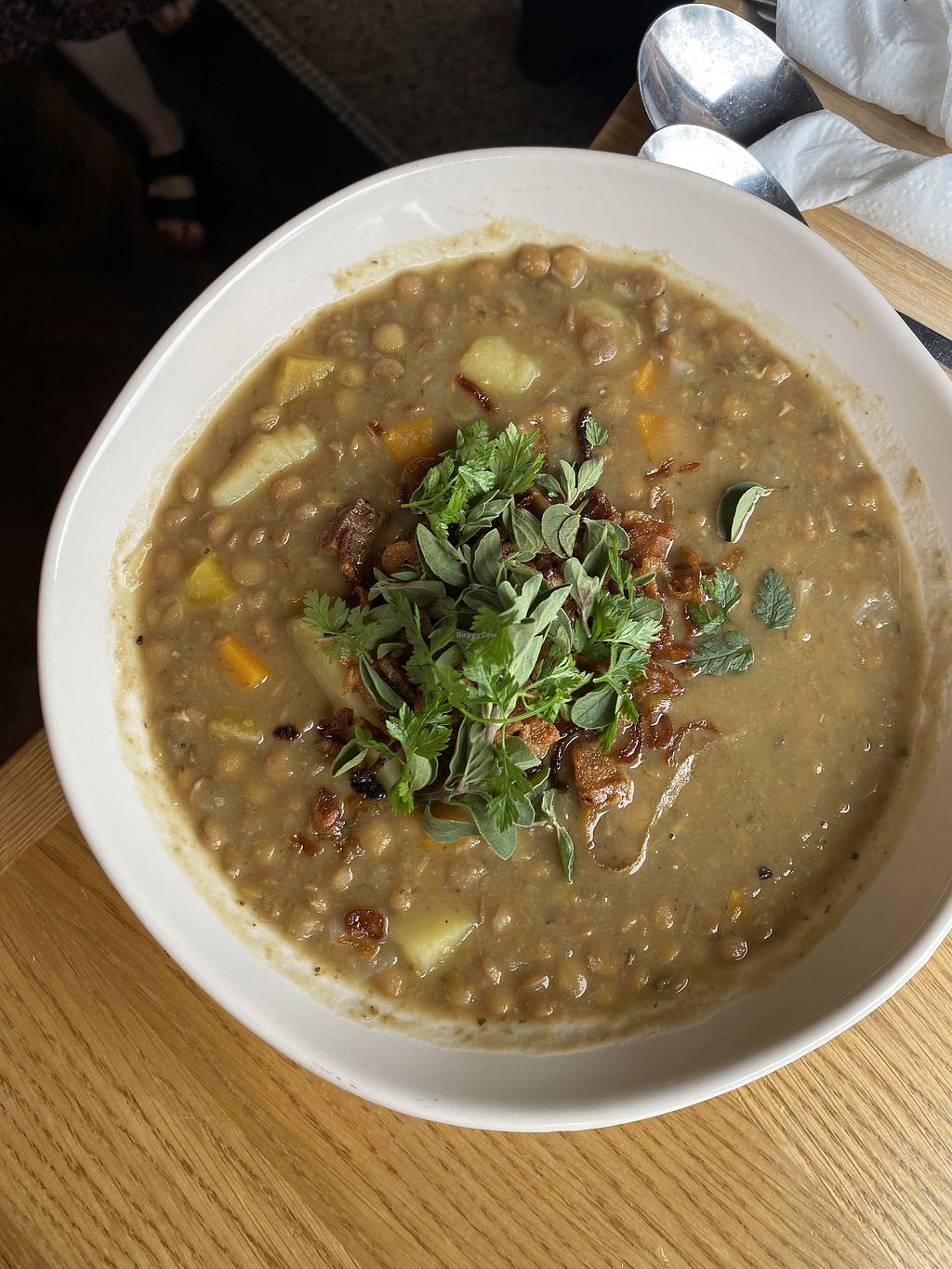Leech Soup (Daily Menu) with homemade Rhubarb-Ginger Lemonade and Capp…