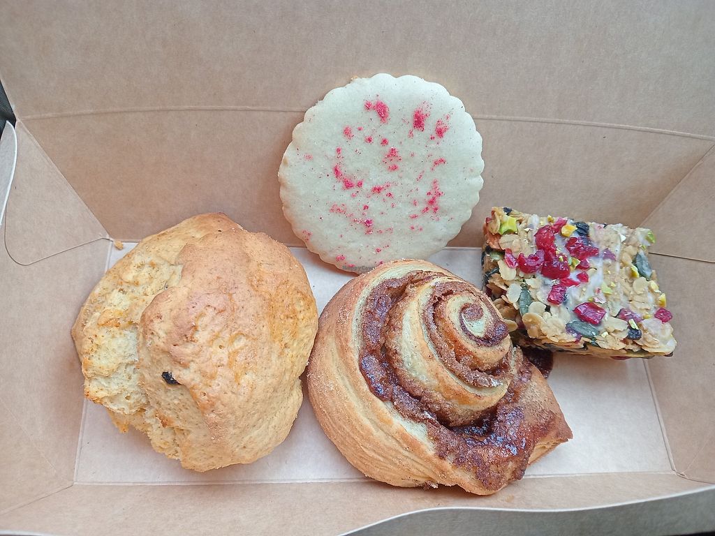 Scone,cinnemon roll (veeeery yummy!),fruit flapjack and a biscuit