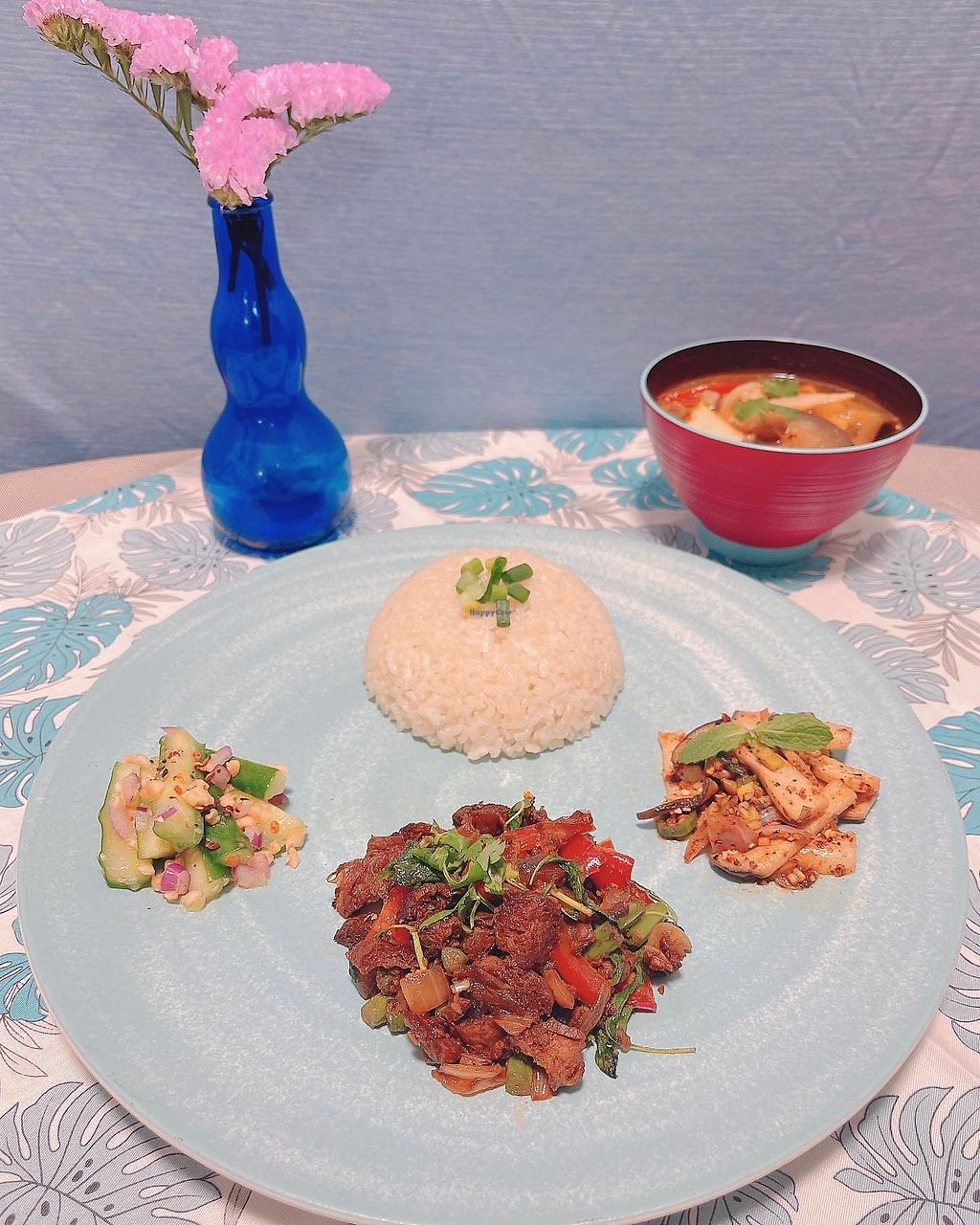 Thai Lunch Set 2 -Vegan Tom Yum Soup -Nam Tok Het (Mushroom Wate…
