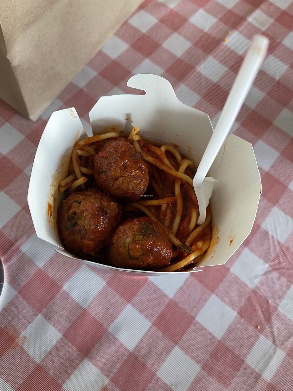Overall I thought the spaghetti was delicious!! I loved that the pb meatballs were whole foods instead of an alternative. The regular size filled me up. I ordered the vegan dish obviously, but the cashier asked me if I wanted dairy parmesan cheese?? I was pretty confused by that, would be great if they had a pb cheese option. I find it frustrating that you pay a dollar more for no cheese and no bread (bread is not vegan either). Chill and quick place to eat before the Tigers game.
