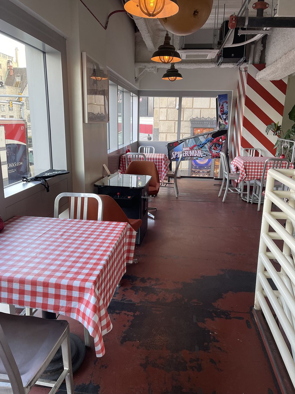 Order outside at window and have the option to eat upstairs inside the Union Assembly. Everything is premade and served quickly. Parmesan and garlic bread is, unfortunately, not vegan. The spaghetti and meatballs were pretty good! Grateful they have the option