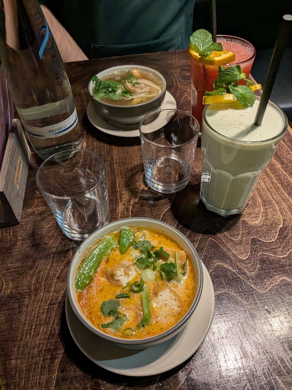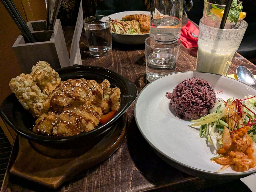 Had a beautiful dinner here, very nice decor and great service. Couldn't decide between all the tasty offerings, definitely come hungry. The avocado shake and seitan duck get a special mention. The coconut curry appetizer soup was incredible after a long frosty day outside.