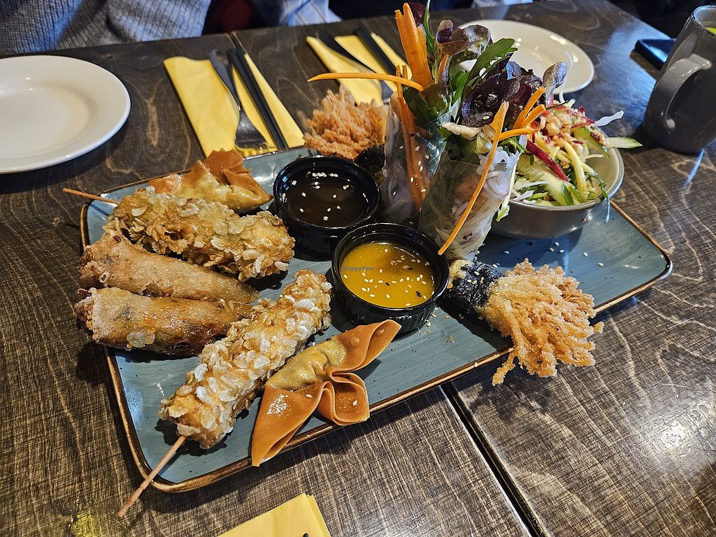 Fully vegan Vietnamese restaurant with a calm vibe and friendly staff. We've tried a selection of starters and three different mains and were very satisfied, even though some of the appetisers were deep fried and quite heavy. We really enjoyed the creative use of various mushrooms, tofu and seitan in our dishes, as well as fresh crunchy vegetables and excellent sauces.