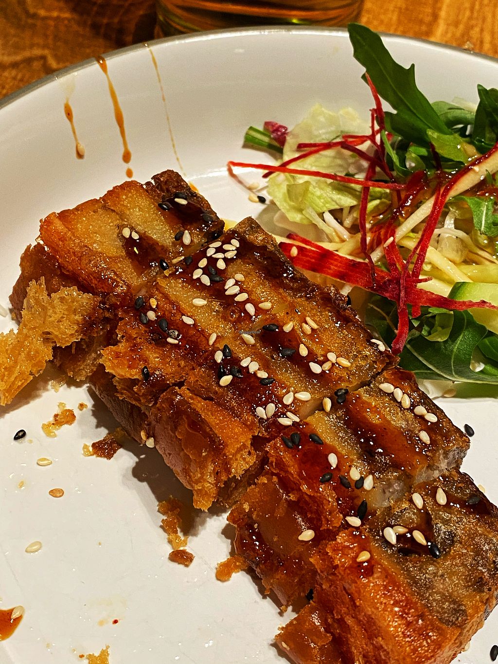 A really sweet spot with a peaceful and serene ambiance. But the menu steals the show. Many tapas to try, but I highly recommend the “pork belly” as it was a work of art with consistency, eye appeal, and mouthwatering tastes. The mains are many and varied, making it hard to decide. I opted for the Kho To, a bowl with king oyster mushrooms, tofu, seitan, and vegetables with black rice and a salad. Delicious! Both courses also came with tasty, fresh kimchi. And finally, splurged on dessert of Che Buio, a sweet mung bean pudding, which was divine. Easily a top spot in Berlin for me.