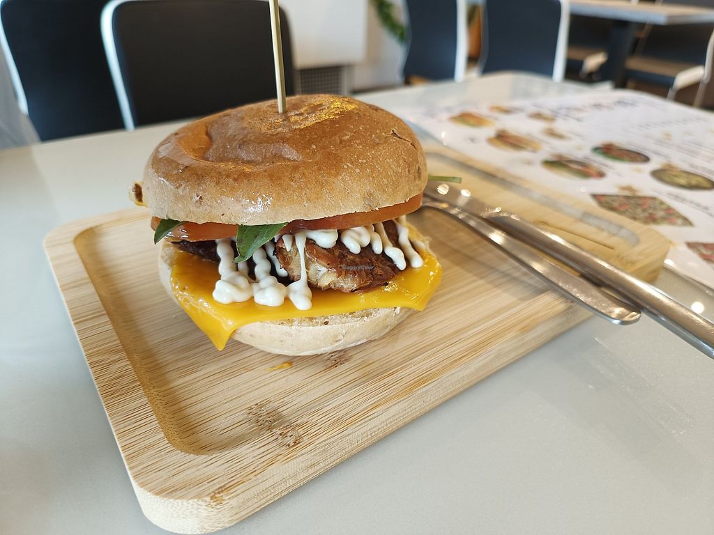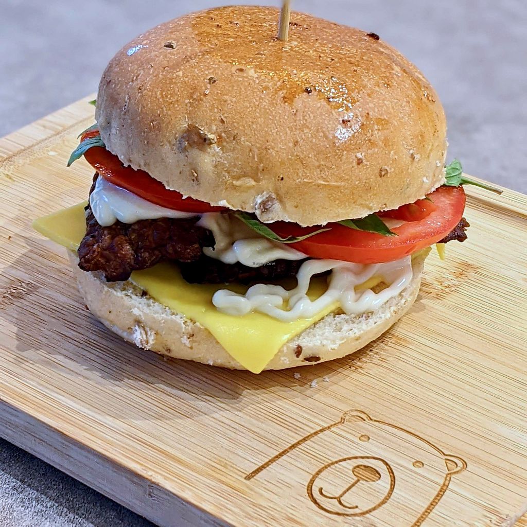 Cheezy Basil Tempeh Burger