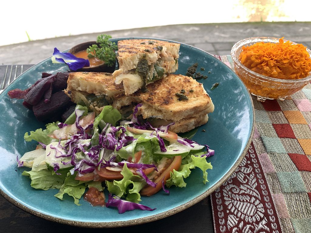 This café/restaurant is one of the first ones you will find when walking to the rice fields. It's small with about 4-5 tables (all outdoor). The menu has a good amount of vegan options, ranging from Indonesian food to other options like sandwiches.
