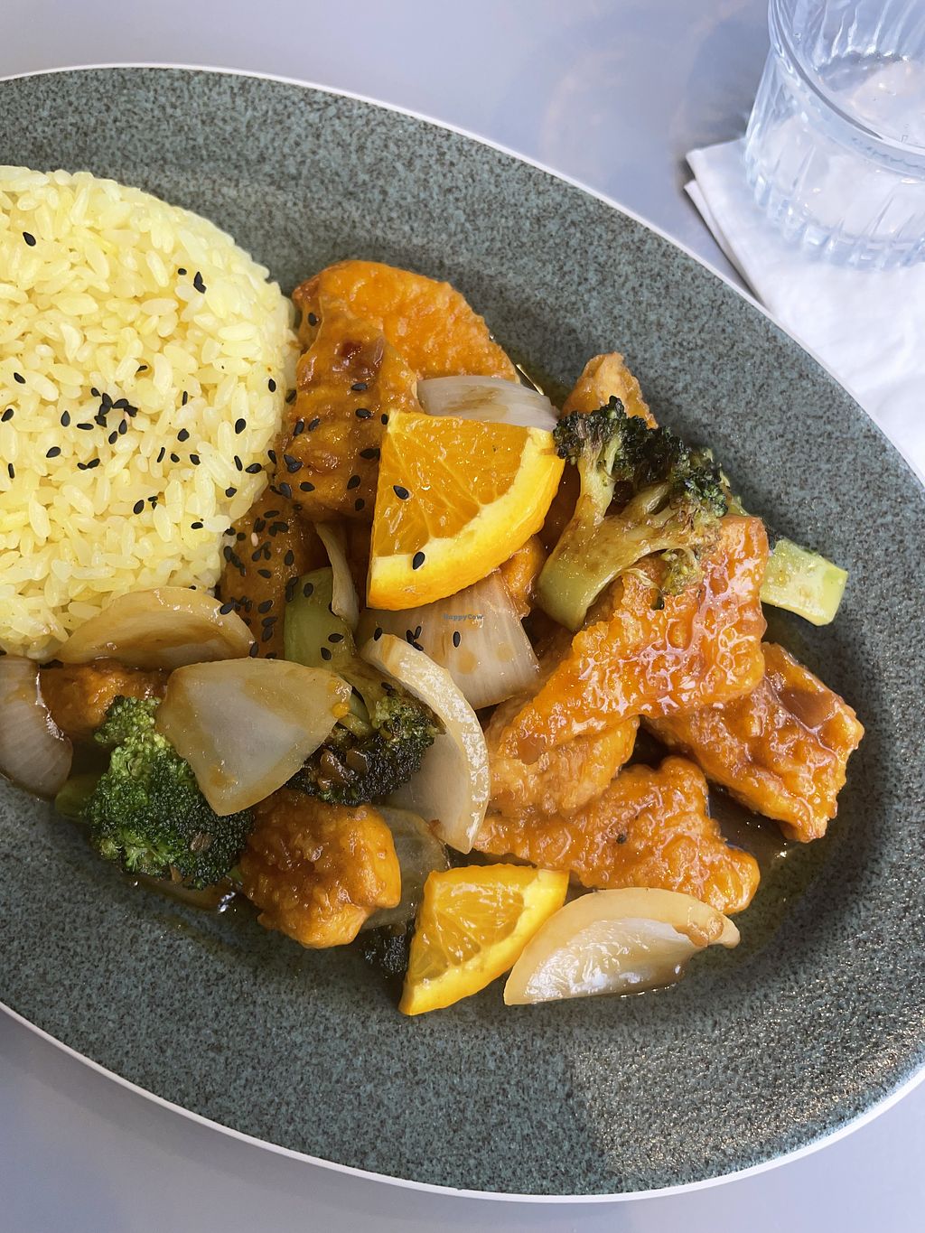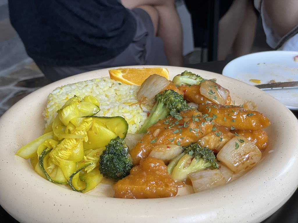 Vegan orange chicken rice