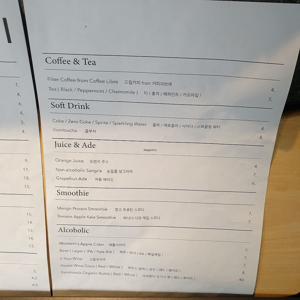 Menu in Korean