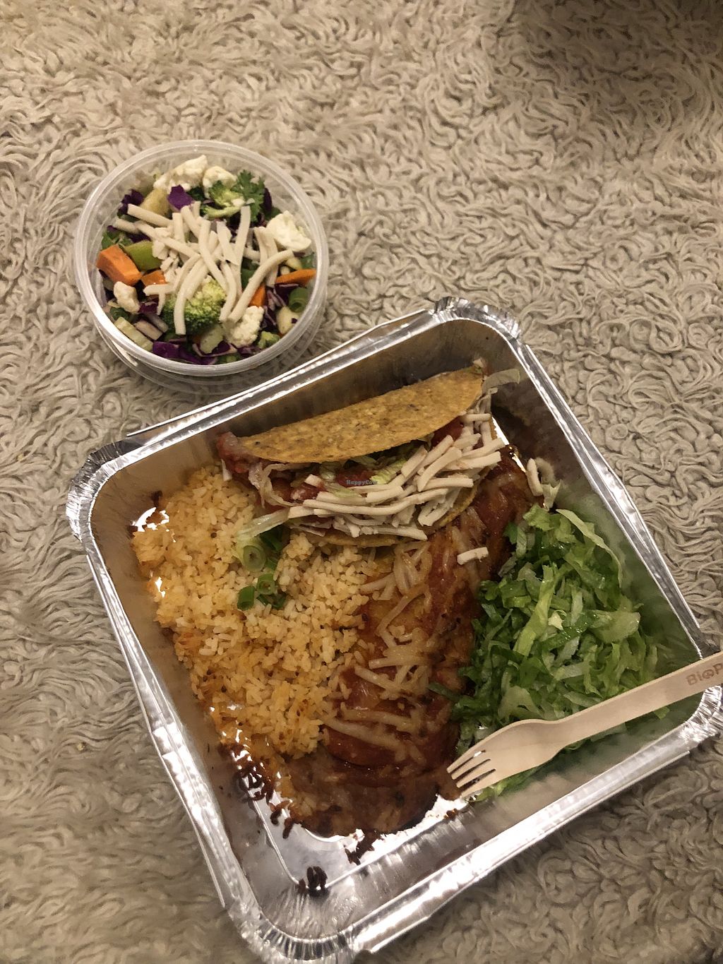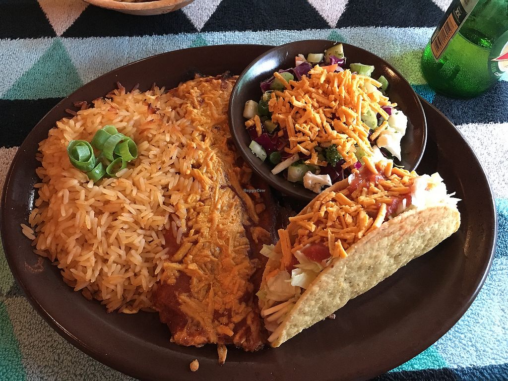 Vegan Combination dinner with salad and hard shell taco