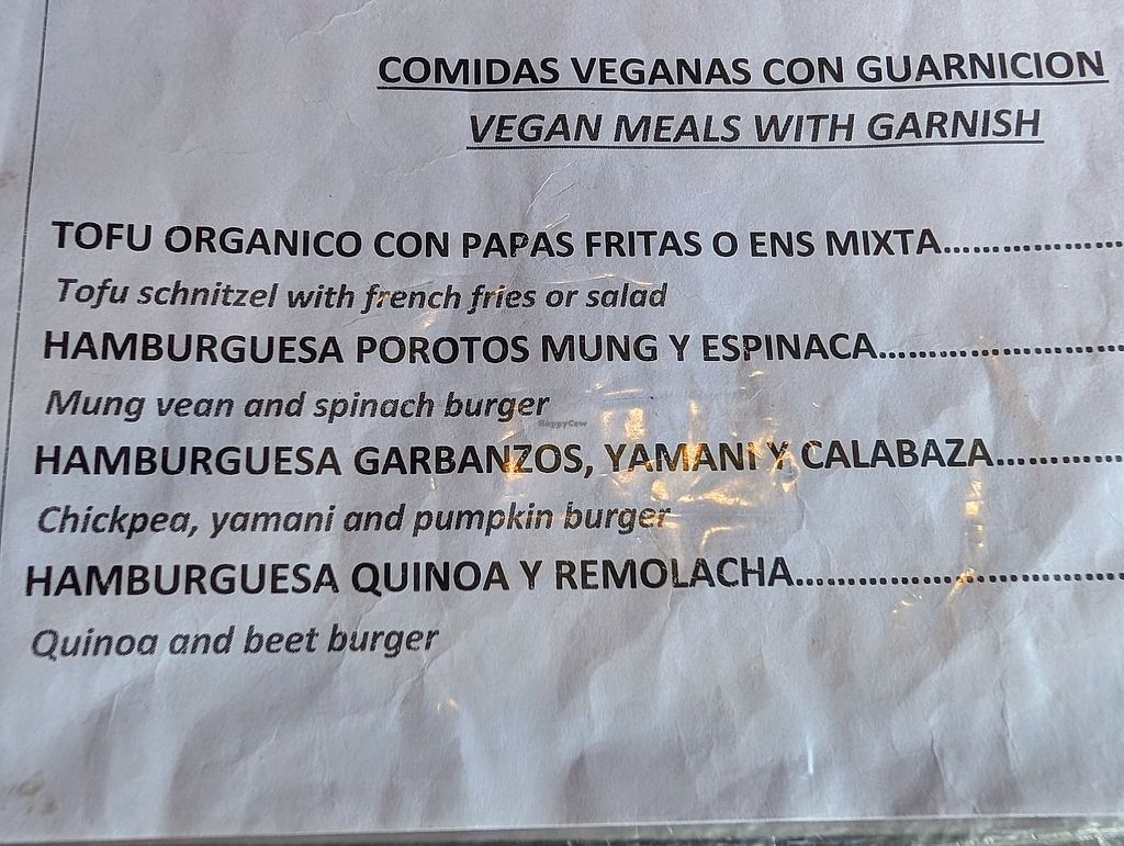 When I visited there were 3 vegan burger options - chickpea, adzuki or a quinoa and beetroot option - all served with fries. This was fine for what I fancied after a big hike, and the burger itself (I ordered the adzuki) was actually pretty tasty. Pricey but everything in El Chalten is
