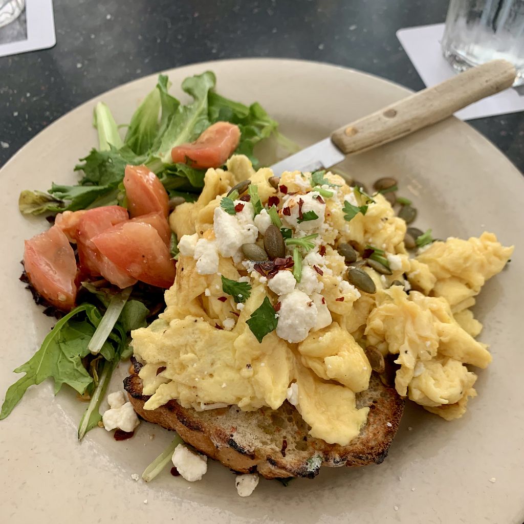 Read moreTofu Scramble with sriracha and sourdough with peach jam was delicious, practically cleaned my plate.