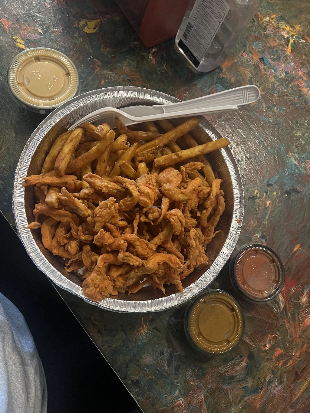 Oyster mushrooms with cheese fries