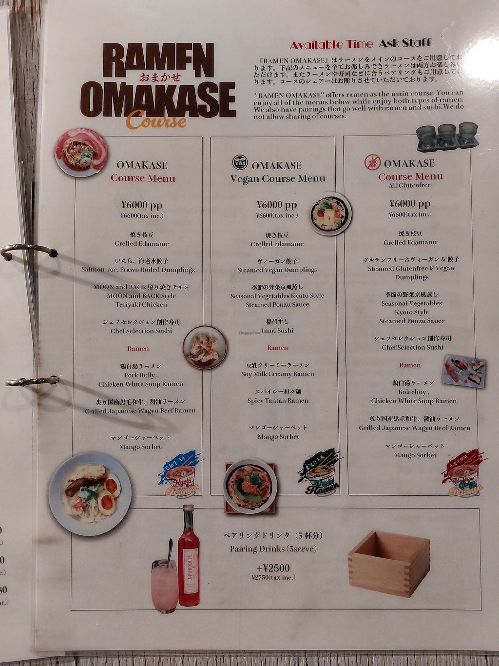 2 vegan options: creamy soy or spicy. I had the creamy option for 2 days in a row. It was the best meal I had in 2 weeks of visiting Kyoto/Osaka/Tokyo. There is a huge line around 6pm so I advise a lunchtime/afternoon visit as you may be able to walk straight in. My wife is a meat eater and here we could both enjoy a meal together.