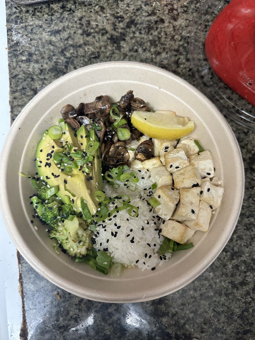 Sesame rice bowl with broccoli and sweet potatoes and tofuu